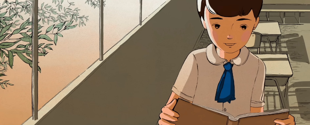 학교 문을 열 때, 요시오는 삐걱거리는 소리를 들었습니다. 아직 아무도 학교에 오지 않았습니다. 실내화를 신고 반짝이는 바닥 위에서 발이 스치는 소리를 들었습니다. 아무도 없는 교실은 색다르게 느껴졌습니다. 그는 창가 그의 책상에 앉아 책을 꺼냈습니다.
