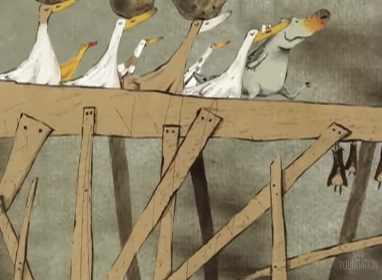 세 악어가 이죽거리며 씩 웃으며 말했습니다. “우린 네가 오리들과 함께 산다는 걸 알아. 내일 다리로 오리들을 데려와 다이빙 연습을 해. 우리는 다리 밑에서 입을 쫙 벌리고 기다릴게.”