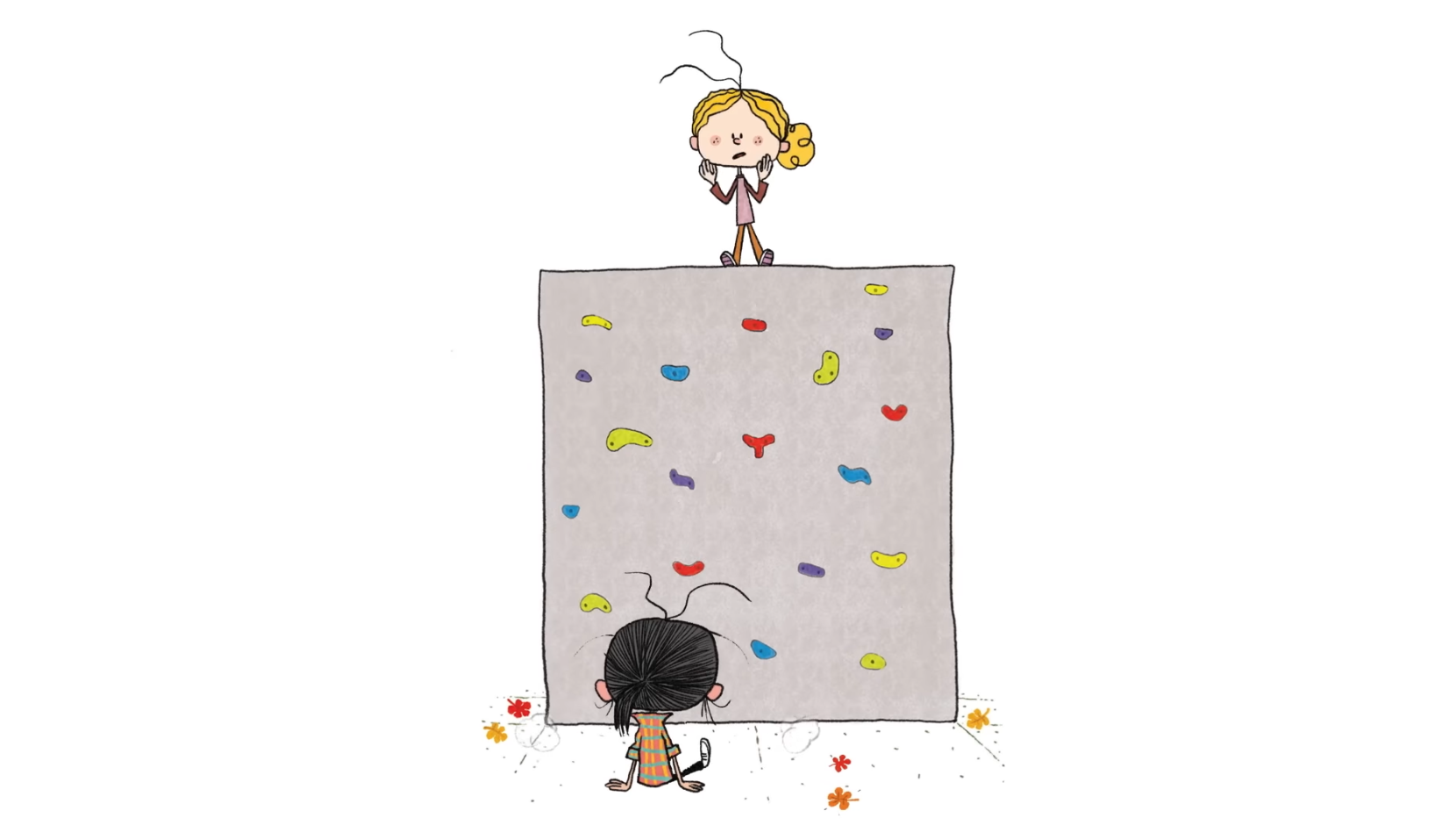 “Let’s play on the climbing wall,” Maddi said. “No way," Sofia said. “I can’t reach.”