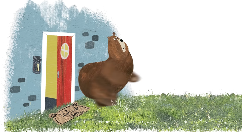 그 순간, 곰은 평생 한 번도 느껴보지 못한 감정을 느꼈어요 — 용기였습니다. 그는 친구가 걱정돼서, 안전한 집에 머무는 대신, 지금까지 그 어떤 곰보다도 빠르게 문을 박차고 달려 나갔어요.