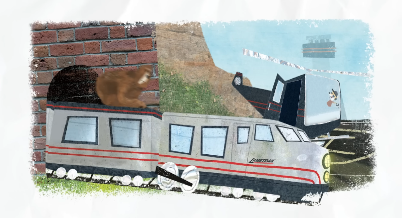 그러자 곰은 그 높고 미끄러운 산을 오르지 않기 위해서라면 뭐든 하겠다고 결심했어요. 그래서 가장 가까운 기차역으로 걸어갔죠. 기차는 산을 반쯤 돌아 비행장이 있는 곳까지 그를 태워 주었습니다. 비행장에 도착한 곰은 헬리콥터 표를 샀고, 그 헬리콥터는 그를 산 정상까지 데려다주었어요. 그리고 그곳에는—예상했겠지만—기다리다 잠들어버린 토끼가 있었죠.