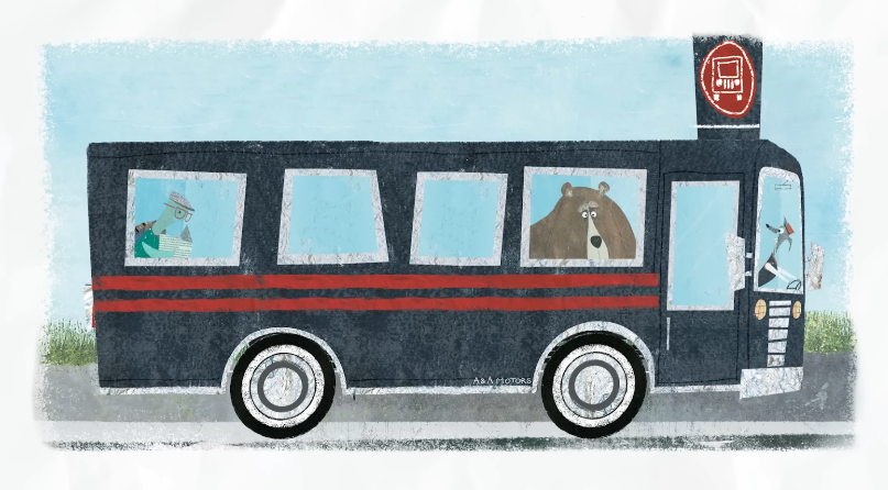 그리고 곰은, 그 어둡고 으스스한 숲을 피할 수만 있다면 뭐든 하겠다고 결심했어요. 그래서 길가로 나가 버스를 기다렸죠. 버스가 와서 그를 태워 숲을 크게 돌아갔습니다. 반대편에 도착했을 때, 곰은 또다시 그를 기다리다 잠든 토끼를 깨웠습니다.