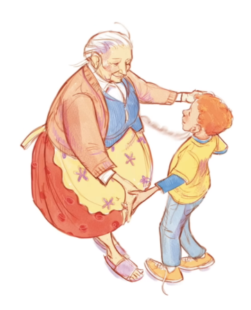 Grandma Rosie is also awesome at checkers, and when she’s in the mood, we have some good, fast games. Of course, in the middle of a move, she could knock over the board and start an argument with my Grandpa Nate, who died five years ago. She does this once in a while, and let me tell you, I jump ten feet every time it happens. But the weirdest thing is when she’s just sitting quietly humming or drinking tea, and suddenly calls out, “Nate, let’s waltz!” Since dancing is her favorite thing, whoever’s in the room helps her out of her chair, puts an arm around her waist and waltzes. Even Martha, our pet schnauzer, gets up on her hind legs and follows us around. It’s a crazy scene, but it makes Grandma happy.