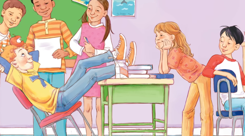 Ruben Plotnick is the coolest kid in my class, and he’s known throughout school as “The Plotnick.” Everything Ruben does is zany. He smears peanut butter mustaches under his nose at lunch. He blows bubbles with a straw in his chocolate milk. He sits on the windowsill in class and balances books on his head while he reads. He answers questions in a kooky voice, but he always knows the right answers. He’s very smart. Everyone wants to be his friend. And suddenly one day, for the first time, The Plotnick wanted to come to my house to do homework with me.