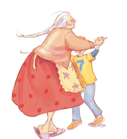 로지 할머니는 체커(checkers)도 정말 잘하세요. 기분이 좋으실 때면 빠르고 신나는 게임을 함께 하죠. 물론 가끔은 말을 옮기던 중 체커판을 엎어버리고, 다섯 해 전에 돌아가신 할아버지 네이트와 다투기 시작하기도 해요. 그런 일이 생길 때마다 저는 깜짝 놀라서 열 발짝쯤은 뛰어오르는 기분이에요. 그런데 가장 이상한 건 할머니가 조용히 앉아 콧노래를 부르거나 차를 마시다가 갑자기 “네이트, 왈츠 춰요!” 하고 외치실 때예요. 춤추는 걸 가장 좋아하시는 할머니를 위해, 방에 있는 사람은 누구나 할머니를 의자에서 일으켜 세우고 허리에 팔을 두른 채 왈츠를 춰요. 우리 집 강아지 슈나우저 마사(Martha)도 뒷다리로 일어나 우리를 따라다니죠. 조금 엉뚱한 장면이지만, 그럴 때 할머니는 참 행복해 보입니다.