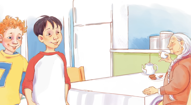 I was really glad Ruben wanted to come over, but I was also pretty worried about what he would think of Grandma Rosie. You never can tell what she’ll do. You see, my Grandma Rosie forgets things and mixes things up. Sometimes she sits totally still and won’t answer when you talk to her. Other times she rocks so much you’d think she was in some kind of rocking contest. Her hair is white and she’s very pretty. She’s a great singer too. Her voice is kind of whispery now, but she knows the words to tons of old songs. She still makes the best chocolate cookies I ever tasted, but sometimes she calls me ‘little boy’ instead of David.