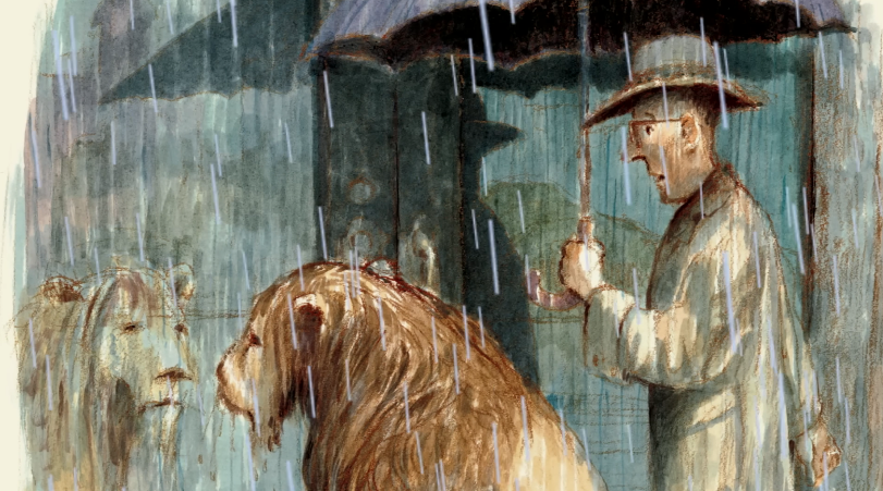맥비 씨는 가능한 한 빨리 복도를 걸어갔습니다. 하지만 사자는 그를 따라가지 않았습니다. 그는 규칙을 어겼고 그것이 무엇을 의미하는지 알고 있었거든요. 사자는 고개를 떨구고 문 쪽으로 걸어갔습니다. 맥비 씨는 그것을 보지 못했어요.