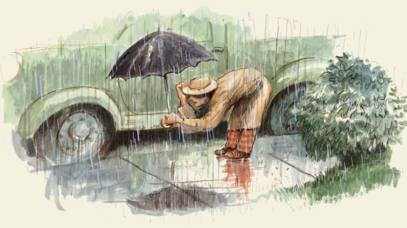 맥비 씨는 도서관을 나섰습니다. 하지만 집으로 가지 않았습니다. 이웃 거리를 한 바퀴 돌며 자동차 밑을 들여다보고, 덤불 뒤를 살펴보고, 뒷마당과 쓰레기통, 나무 위의 작은 집까지 들여다보았습니다.