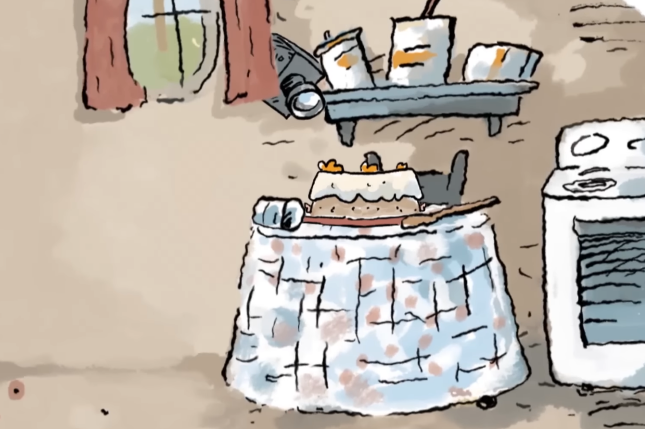 “하지만 이제 파티는 취소해야겠네요. 케이크가 없으니까요.”