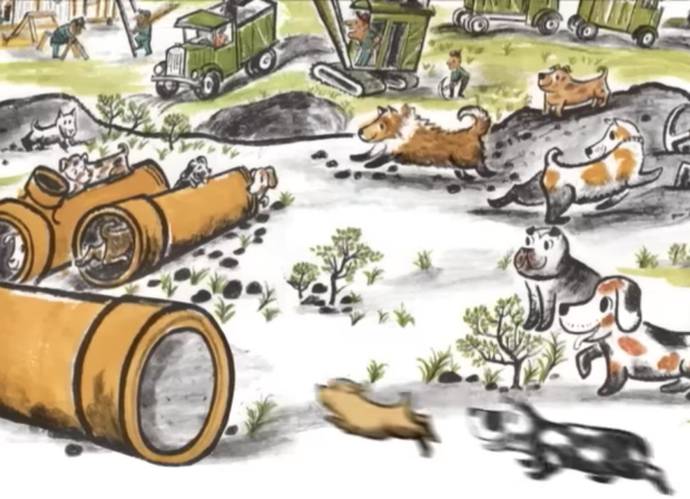 곧 그는 짧게, 즐거운 소리로 짖으며 구멍에서 뛰쳐나왔어요.