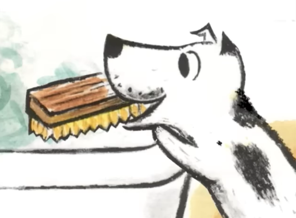 So, one day, when he heard the water running in the tub, he took the scrubbing brush... and buried it in the backyard.