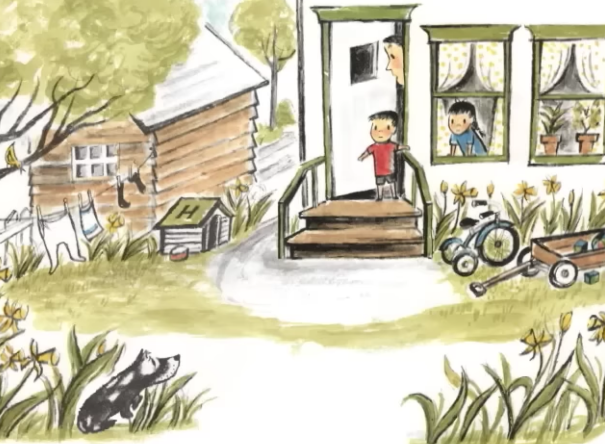 가족 중 한 사람이 밖을 내다보며 말했어요. “뒷마당에 이상한 강아지가 있네… 그건 그렇고, 해리 본 사람 있니?”